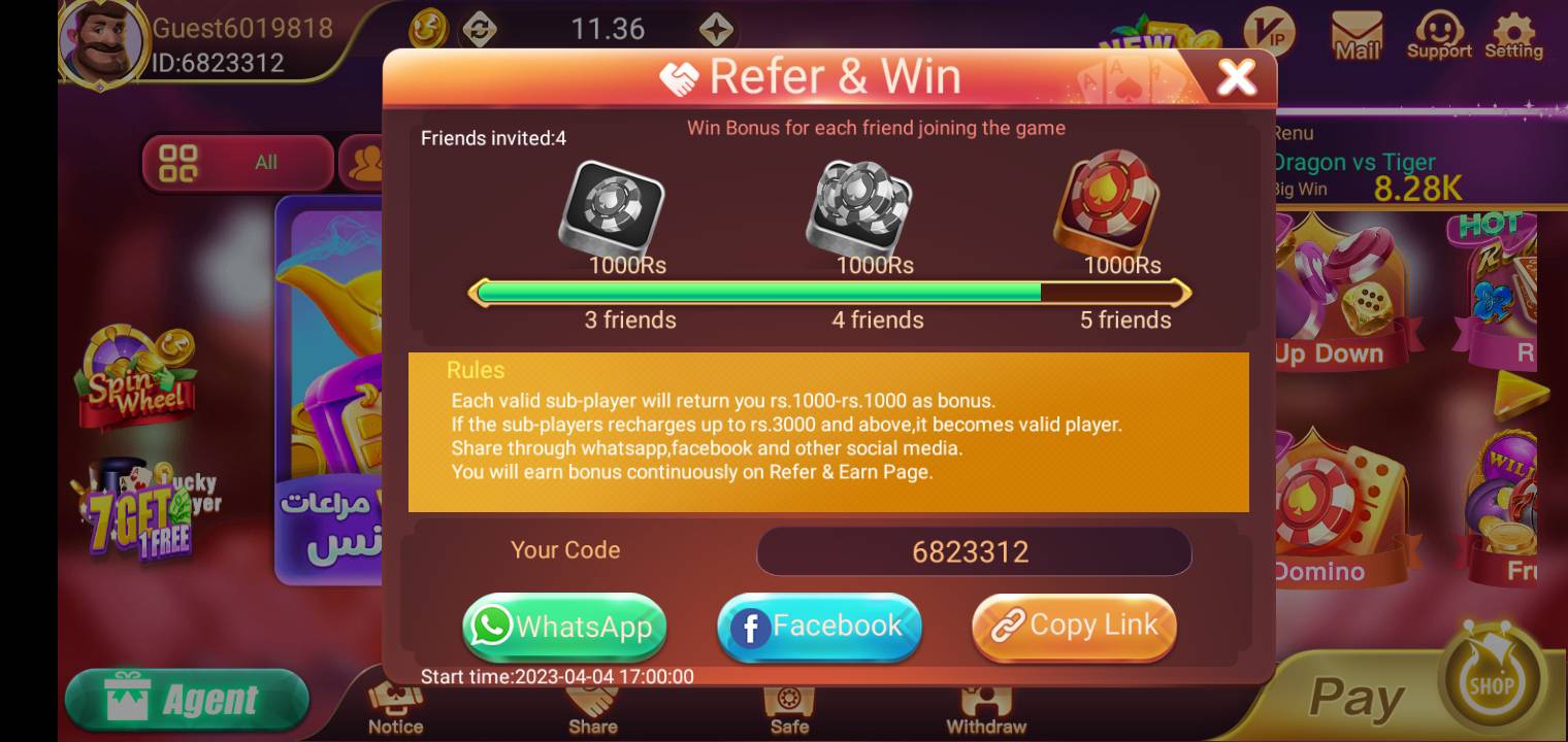 3 Patti Gold offers an excellent referral system where you can earn by inviting friends and family. Each active referral gives you continuous bonuses, making this a great way to build passive income.
