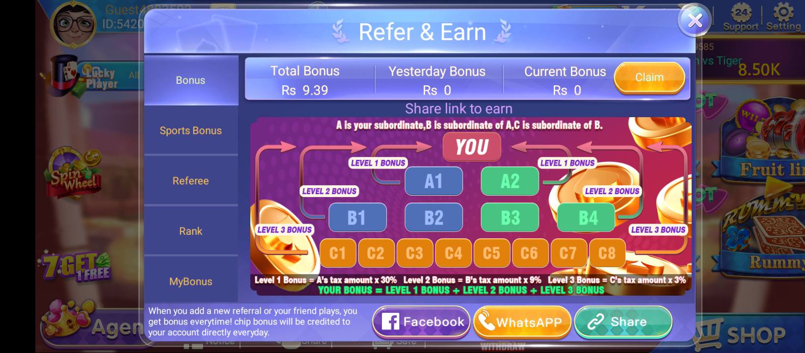 Every user can take part in the referral program. Simply share your invite link with others. Once they sign up and start playing, you earn a commission on their activity. This passive income opportunity grows as you refer more people.
