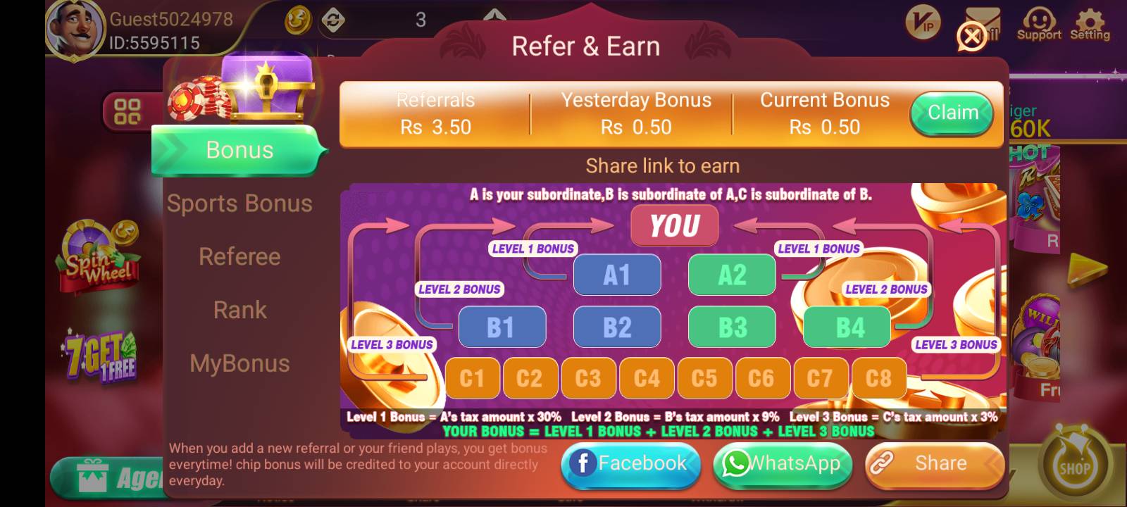 By inviting friends and family, you can earn up to 30% commission from their gameplay. This feature makes it easy to grow your income.