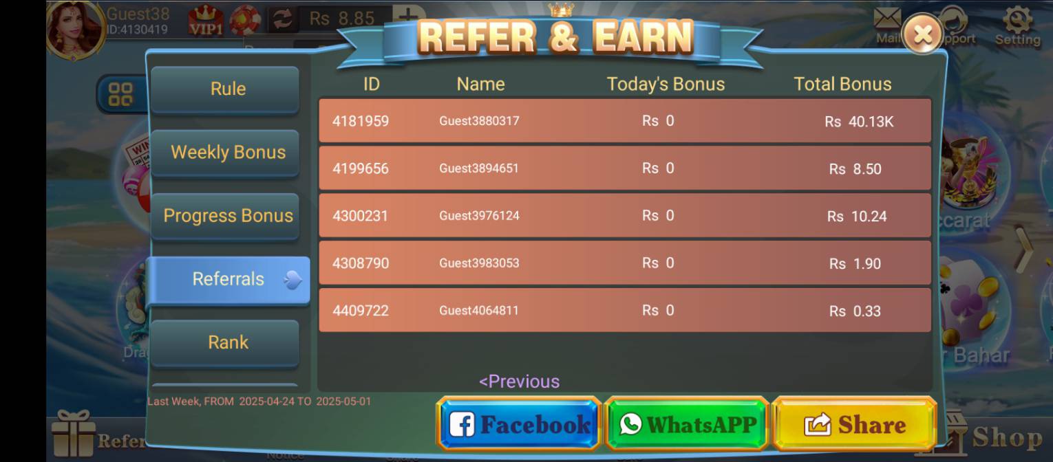 Players receive daily login bonuses, referral bonuses, weekly rewards, and VIP benefits. These rewards keep players motivated and ensure that even new users can continue playing without making large deposits.